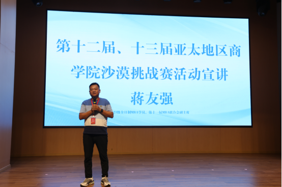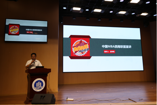 在学院领导、MBA教育中心工作人员与新生见面环节,学院副院长、MBA教育中心副主任陈伟也表达了对新生的热烈欢迎与问候。随后,437bwin必赢国际第十一届MBA联合会主席孟伟亮发表了中国MBA西南联盟及437bwin必赢国际MBA联合会主席团宣讲,向学员们展示MBA群体丰富多彩的学生活动。437bwin必赢国际第十一届MBA联合会副主席蒋友强进行第十二届、第十三届亚太地区商学院沙漠挑战赛活动宣讲。“亚沙”作为MBA标志性竞技赛事,学院倡导学员们积极参与、认真备赛,为437bwin必赢国际争得荣誉!