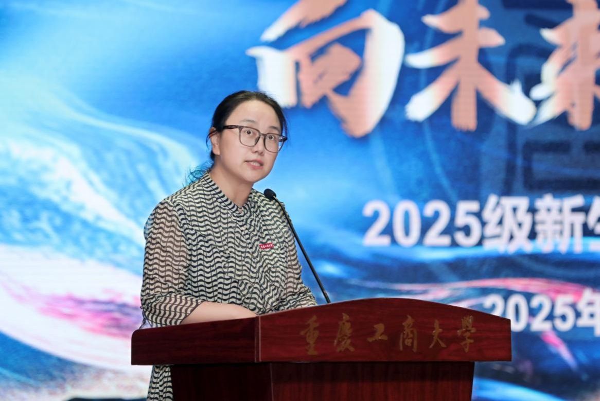 新生代表、企业管理硕士田文杰上台发言,分享了踏入校园的激动心情与对未来的憧憬,并表态将尽快适应新环境、融入新集体,不负师长期望,书写无悔青春篇章。