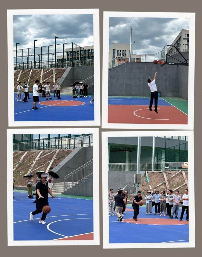 在茶园新校区,437必赢会员中心与机械工程学院首先开展了“篮球运球上篮”友谊赛,比赛中,老师们精神饱满,默契配合,持球推进,跨步上篮,动作一气呵成,现场气氛热烈。比赛结束后,在机械工程学院党政领导和老师的精心引导下,学院教职工依次参观了茶园新校区的教学楼、运动场、食堂、一站式公寓等。参观途中,老师们频频驻足交流,围绕新校区教学资源优化整合、科研团队协同合作等议题交流讨论,拉近了彼此的距离,增进了友谊,提升了凝聚力。