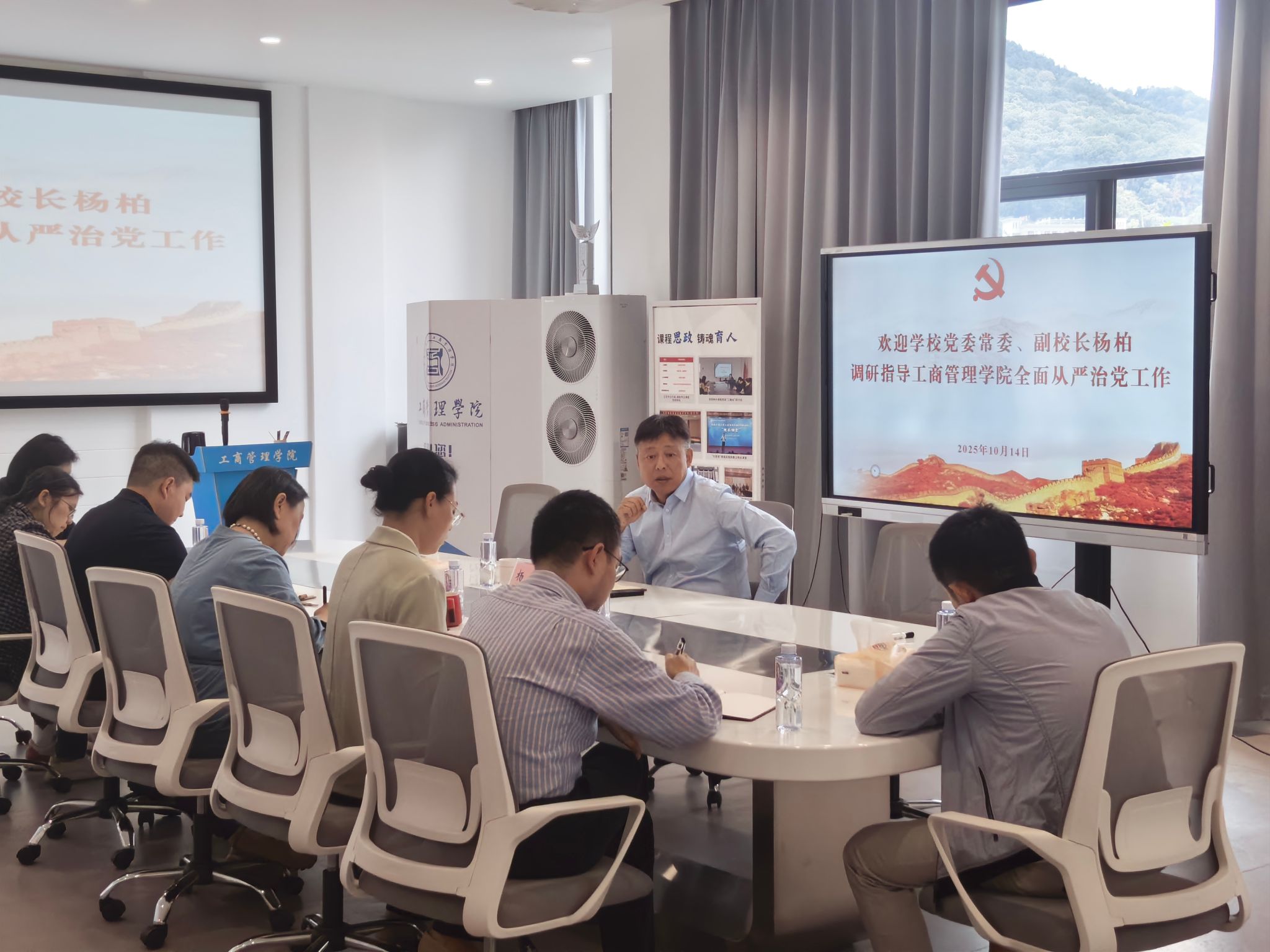杨柏对学院扎实开展全面从严治党工作表示充分肯定,并对深入学习贯彻习近平新时代中国特色社会主义思想,进一步推进党建统领下的办学育人高质量发展提出了六点要求:一是要深化理论武装,深学细悟习近平总书记关于党的建设的重要思想、关于党的自我革命的重要思想,巩固拓展学习教育成果,提高思想认识,增强从政治上看、从政治上抓全面从严治党工作的意识和能力。二是要压实政治责任,认真对照校党委关于二级党组织、二级纪委履行全面从严治党主体责任、监督责任的“两个清单”,确保事事有人管、事事有人做。要突出以上率下,“关键少数”要做到自身正、自身硬、自身廉,充分发挥示范引领作用,形成学院风清气正育人环境。三是不断加强基层党组织建设,充分发挥治理能力现代化作用,推动党建工作与业务工作深度融合,发挥MBA功能性党支部作用,推动党建工作与教学科研、人才培养、科技创新、管理服务、队伍建设等一体推进、同向发力。四是要强化“一岗双责”,抓好党风廉政建设。针对巡视巡查问题整改、经责审计反馈问题整改等,积极做好检视整改工作。五是要规范开展好党委理论学习中心组学习、“三会一课”、专题民主生活会、教职工政治理论学习、支部书记例会等工作。落实立德树人根本任务,推动思政课程与课程思政同向同行,构筑学校“大思政课”育人新格局。六是要以党的自我革命精神推动各项工作。学院在推进双学位项目、微专业发展、教学与科研均衡发展等教育改革中,要以党的创新理论武装头脑,坚持问题导向,不断优化专业设置,提升教学质量,增强学院的吸引力和竞争力。
