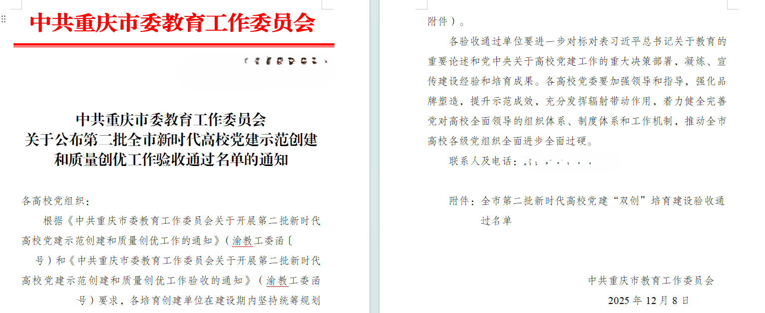 近日,中共重庆市教育工委下发文件,437必赢会员中心党委教工第三支部顺利通过第二批全市新时代高校党建示范创建和质量创优工作验收,标志着支部“双创”培育建设取得阶段性成果。验收以来,支部坚持以高质量党建引领事业发展,聚焦立德树人根本任务,围绕中心、服务大局,持续强化政治功能和组织功能,推动党建与教学科研、人才培养、管理服务深度融合。支部以制度建设夯基、以品牌活动聚力、以示范引领提质,常态化开展理论学习、主题党日与实践服务,持续提升党员教育管理水平和支部凝聚力战斗力。下一步,教工第三支部将以通过“双创”验收为新起点,持续对标新时代高校基层党建要求,总结推广经验做法,巩固创建成果,推进党建工作提质增效,为学院高质量发展和学校事业进步提供坚强组织保障。