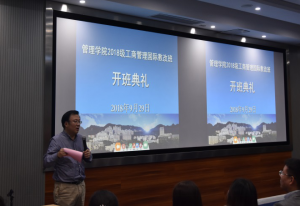 开班典礼由管理学院分党委王建明书记主持,参加典礼的领导和主要人员包括教务处处长靳俊喜教授、国际合作与交流处处长韩艳教授、必赢国际处申卫东处长、通识学院党总支书记、院长包晓玲教授、学生处刘代成副处长、管理学院院长杨柏教授、副院长周莉教授、分党委王静副书记,任课教师代表王琳博士、管理学院国际部部分老师和辅导员以及全体2018级国际教改班新生。