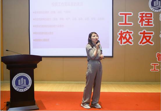 “主题论坛——创享青春,协同引领新时代”,01-14级校友代表财信发展集团投资发展中心总经理马荷,云南龙镁环境科技有限公司总经理金小龙,碧桂园集团川西南区域总裁助理文强,重庆大学建设管理与房地产学院在读硕士咸坤泽四位优秀校友结合不同的人生经历发表了自己对职业生涯规划及大学生活的观点,以在母校读书学习生活为起点,述说了他们的人生历程以及取得的成绩,其中03级校友马荷学姐以自己的职业生涯为例对学弟学妹们的大学生活提出几点建议:一是主动创造机会,机会从来都不是走到你面前的,而是自己主动创造的;二是学习,利用琐碎的时间去学习现阶段与自己能力不匹配的工作,当时机成熟时,你的机会也不会在你面前流失。