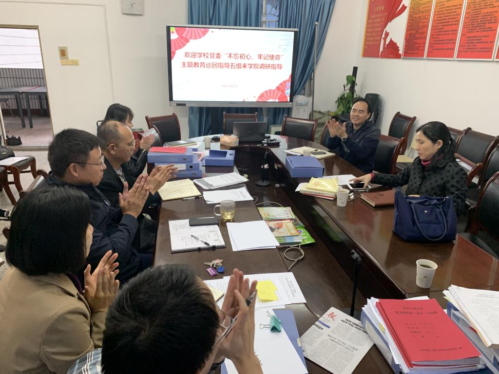 在认真查阅了学院主题教育活动开展情况的相关资料以后,米密副部长指出,学校分党委查找的问题要聚焦实际工作,要具体可操作;要加强与学校巡回指导组的联系沟通,注意档案材料的规范性。柏群副校长提出了四点意见:一是领导班子要高度重视开展主题教育活动的重要意义;二是要突出重点,克服两种倾向,把主题教育活动落实细化到一流学科建设和博士点申报工作之中;三是把规定动作做实,不做花架子。严格按照学校有关主题教育活动的部署安排,做实做细主题教育活动的规定动作,有序推进学院主题教育活动的各个环节、各项任务。要注重调研活动的针对性、科学性、有效性,要以解决教学科研、学科建设、人才培养、队伍建设等实际问题的成效为衡量标准。四是主题教育活动的档案材料要进一步完整、规范。