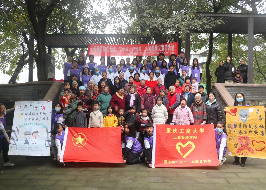 在时代高速发展和人类文明社会不断进步的今天,毒品和艾滋病仍然威胁着人类的安全健康与生存发展。为向人们传递抵制毒品和预防艾滋病的思想观念,共同建设美好文明社会,437必赢会员中心“爱心桥”义工•志愿者协会于2020年11月29日在重庆市渝中区嘉陵桥西村小区开展了以“筑禁毒防艾长城,守千家万户安康”为主题的禁毒防艾宣传活动。