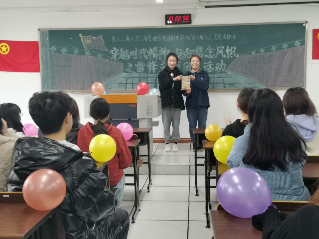 上午十点,活动准时开始。首先,志愿者用舞蹈《学习雷锋好榜样》顺利点燃了现场的氛围,又通过相声表演《来自心灵的感动》将大家带入弘扬雷锋精神的多彩世界中。接下来,激情澎湃的诗朗诵《祖国啊,我亲爱的祖国》深深唤起大家对祖国的爱,在感叹祖国的宏大与壮阔的同时,引人入胜的情景剧《雷锋精神伴我行》彰显了雷锋精神对一个人的改变,号召当代青年弘扬雷锋精神,提升自身道德素质。时间持续到十点三十分,志愿者通过手语操《爱因为在心中》展示对爱的无声传递,旨在带动所有人传播爱的力量,一首《学习雷锋好榜样》的大合唱则将大家内心对雷锋精神的真情与感动大声表达出来。此外,志愿者还策划了游戏环节,并设置精美的礼品,大家踊跃参与,积极投入,在一片欢声笑语中角逐冠军。最后,志愿者进行合影留念,团日活动圆满结束。
