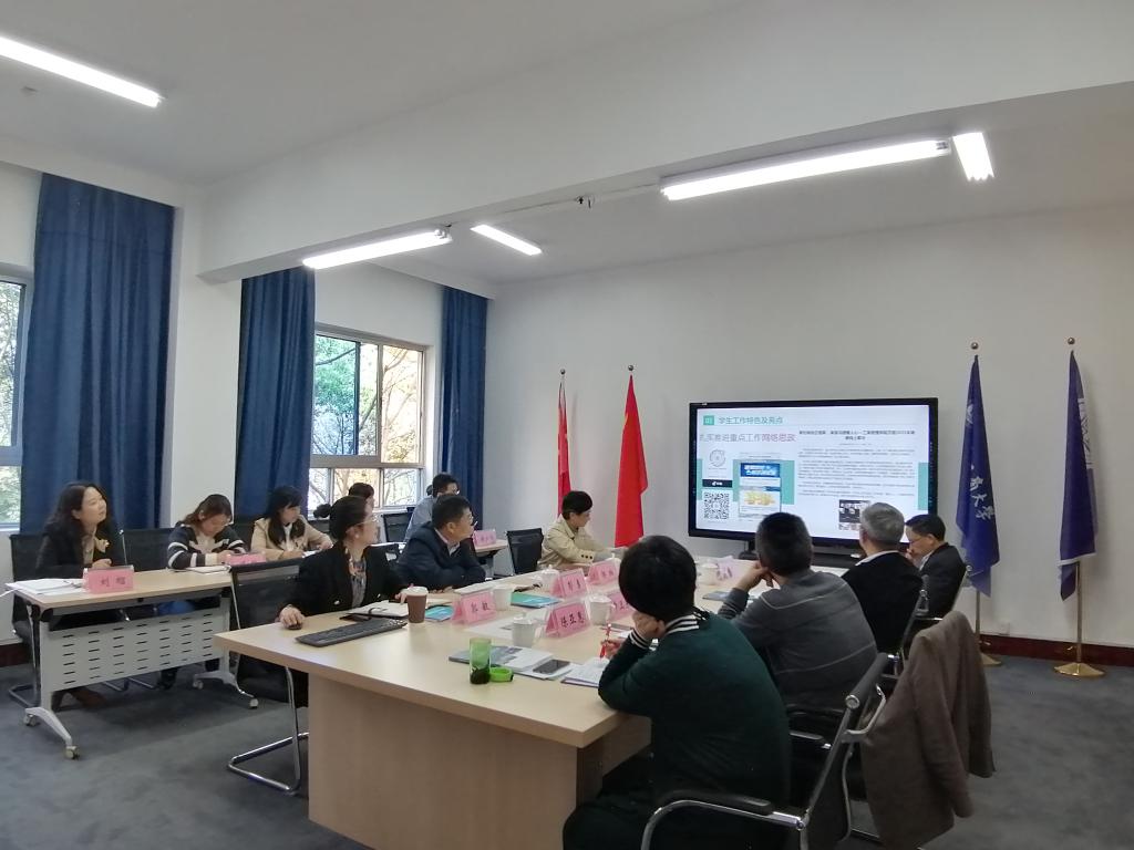 首先437必赢会员中心党委副书记郭敏汇报了学院学生工作开展情况。郭敏同志从学院学生概况、学生工作特色及亮点、目前存在的问题和解决思路四个方面进行了汇报,并对学院下一步构建“三全育人”工作机制、全面推进学风建设等学生工作进行了展望。