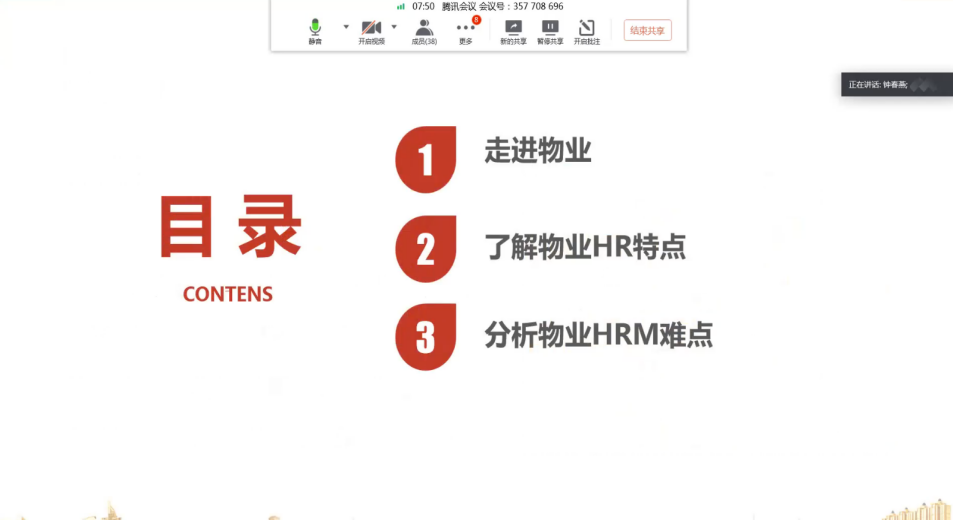 周二讲座主题为物业管理行业的HRM,重庆公司的行政人事总监钟燕首先向学生简单介绍了物业行业的发展现状及发展趋势,紧接着从服务行业、文化水平、年龄结构等方面向学生介绍了物业行业HR特点,分析了物业HRM的难点主要在招聘与配置、培训与开发、绩效管理、劳动关系管理。