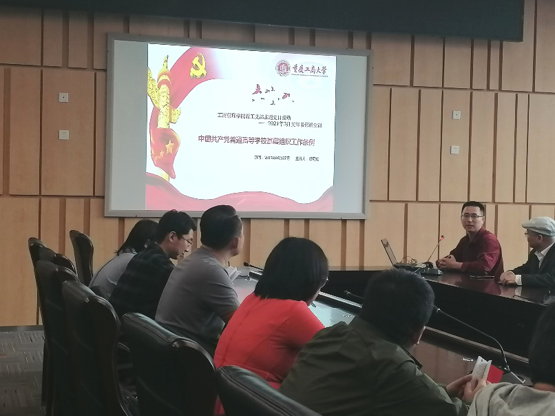 首先,由郑月龙同志对《中国共产党普通高等学校基层组织工作条例》进行了讲解,包括工作条例的“总则”、“组织设置”、“主要职责”、“党的纪律检查工作”、“党的队伍建设”、“干部和人才工作”、“思想政治工作”、“对群团组织的领导”、“领导和保障”等内容。