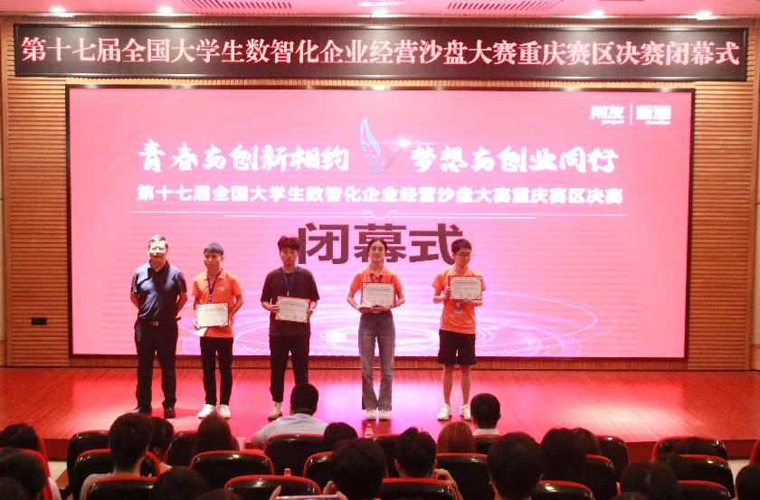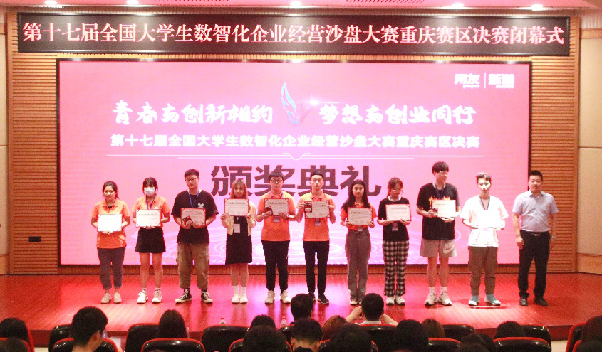 决赛中,由工商管理专业学子领衔组建的两支队伍从校内57支队伍中通过选拔赛,脱颖而出,代表437bwin必赢国际参加重庆赛区决赛,经过为期2天激烈角逐,最终分别荣获一等奖(曹晓伟、刘乾琳、安鹏宇、包伟杰、王静妮)和三等奖(刘力、蔡静鑫、于国延、巫茜、陈婉琳),工商管理学子在比赛中的精神面貌赢得了主办方和技术支持方的一致好评。