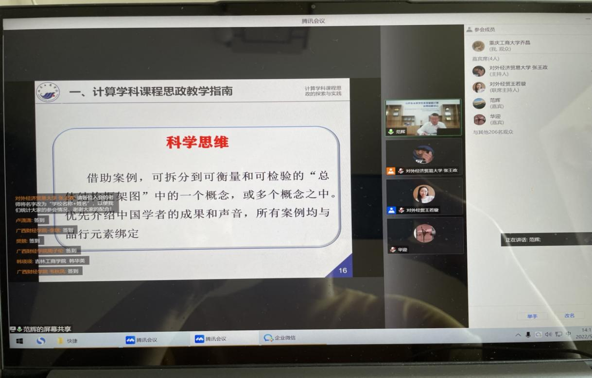 为进一步提升学院老师课程思政教学质量和教学水平,加强相互交流与资源共享,2022年5月31日下午2:00,437必赢会员中心组织老师参加由全国财经类高校课程思政联盟举办的“课程思政云讲座”(第二期)主题讲座。因疫情原因,学院老师通过腾讯会议线上参加本次讲座。