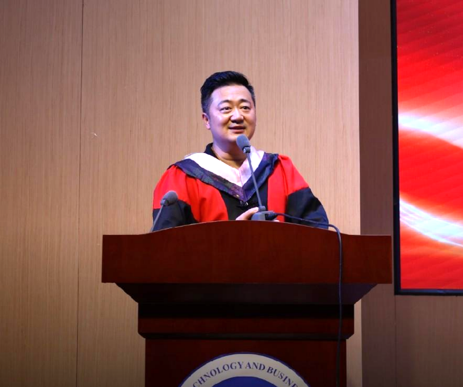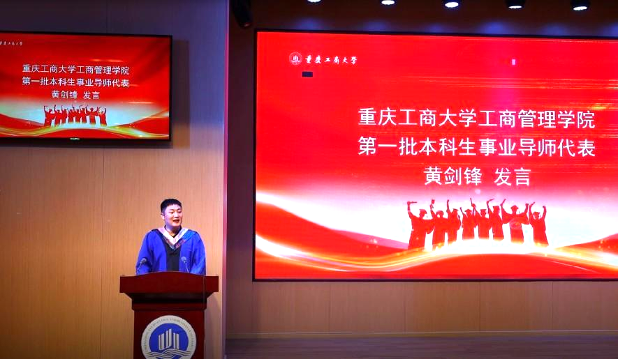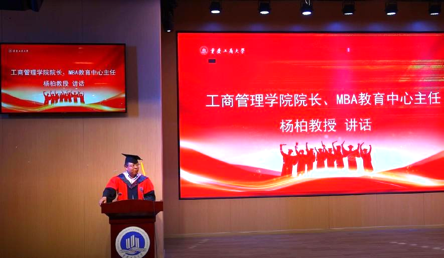 MBA事业导师代表、渝丰科技股份有限公司总经理曾令果博士回忆了自己的博士毕业经历,希望大家珍惜在校园的学习时间,毕业不代表生活结束,相反它正是全新的开始。大家不必受周遭的环境影响而选择躺平,坚信不断的努力,不断地去创造,不断地为学校、为自己、为自己身边的人,树立积极向上的榜样。只要努力,一切将会是最好的安排。