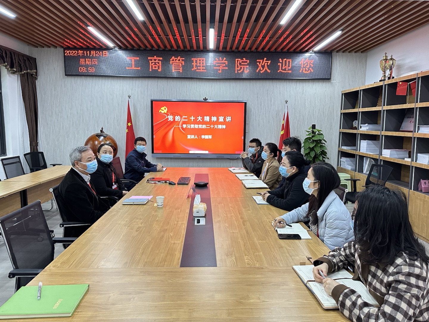 李国军校长对学院在岗教师吃住在校园,坚守岗位,舍小家、为大家,24小时在岗连续奋战十余天守护1721名在校学子,用实际行动践行“立德树人”的初心使命表示非常感动。李国军校长认真听取了大家的汇报,对学院目前开展的各项工作给予了充分的肯定,他强调,一是要深入学习贯彻党的二十大精神,切实把党的二十大精神转化为推动教育高质量发展的实际成效。一定要做好双创支部工作成果的凝练,推进近期校党委布置的党建工作,落实好学院市场营销和工商管理两门国家一流学科的审核评估。二是要做好疫情期间的高质量学生工作的深化和推进,鼓励继续开展形式多样各具特色的育人活动,以适应学生新需求,推进育人效果。疫情期间,学生心理工作复杂且难度大,要密切关注学生动态及时开展心理疏导工作。三是老师们要帮助学生解决学习和生活上的需求和困难。在防疫过程中要充分调动学生骨干的力量,其中包括学院、班级和楼栋干部以及学生党员等积极发挥先锋模范作用在防疫过程中用实际行动作出贡献。