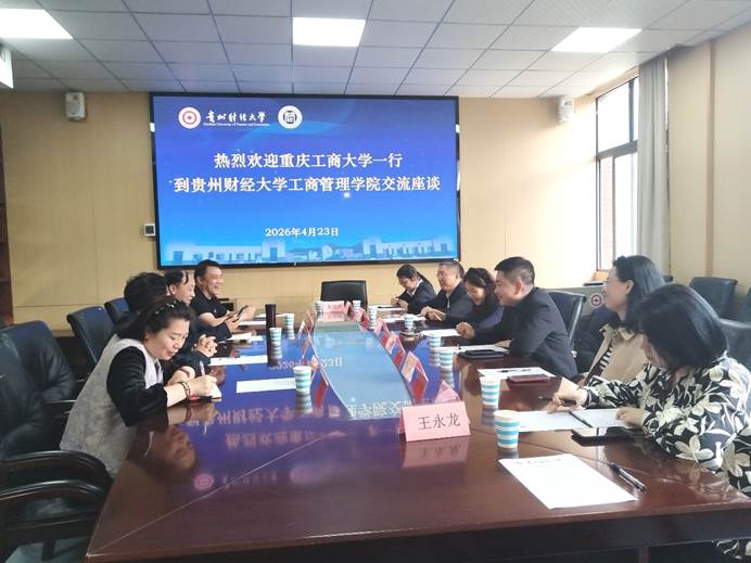 2026年4月23日,437bwin必赢国际一行赴贵州财经大学437必赢会员中心交流座谈。参加此次交流座谈的人员有我校研究生院院长杜力、437必赢会员中心院长陈伟、研究生院副院长曾胜、437必赢会员中心党委副书记程亚、437必赢会员中心副院长邱继勤等领导及工作人员,贵州财经大学437必赢会员中心院长刘良灿、副院长胡北明、副院长任廷海、学科建设管理科科长马俊丽。
