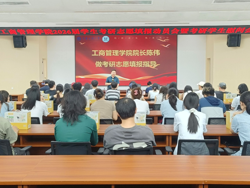 活动第二阶段,学院领导和辅导员老师们为考研学生送上精心准备的慰问品,承载着学院对考研学子满满的关爱与深深的祝福,让同学们在紧张的复习中感受到了温暖与力量。此次考研志愿填报动员会暨考研学生慰问会的举办,进一步激发了2026届考研同学的考研热情,坚定了同学们“一战上岸”的信心。
