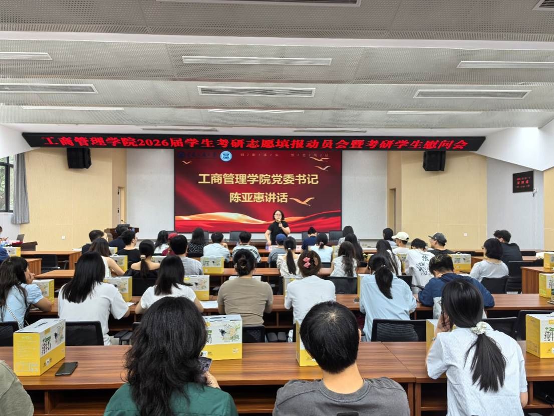 2025年9月18日,437必赢会员中心在明德楼1019会议室举行了2026届学生考研志愿填报动员会暨考研学生慰问会。学院党委书记陈亚惠、院长陈伟、党委副书记程亚、学院学工办主任谭予涵、辅导员樊少华、禹洋春、郑娴、黄韵以及部分2022级考研同学参加了此次活动。会议由学院党委副书记程亚主持。