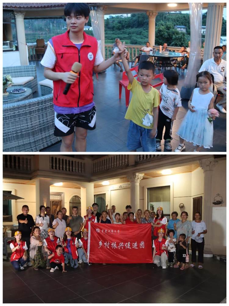 夜幕降临,联盟村文艺晚会在村民们的热切期盼中开始。在演出过程中,促进团成员为村民们准备了贴近联盟村特色游戏与知识问答,赢得现场观众的共鸣和热烈掌声。最后,一首大合唱《我和我的祖国》以拨动心弦的歌声讴歌祖国辉煌,表达了中华儿女最真挚的告白。在促进团成员与村民动人的歌声里,此次文艺晚会画上了圆满的句号,村委工作人员以及村民们对本次表演给予了高度肯定。