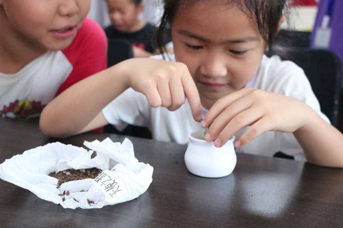 (青少年认真种植多肉)
