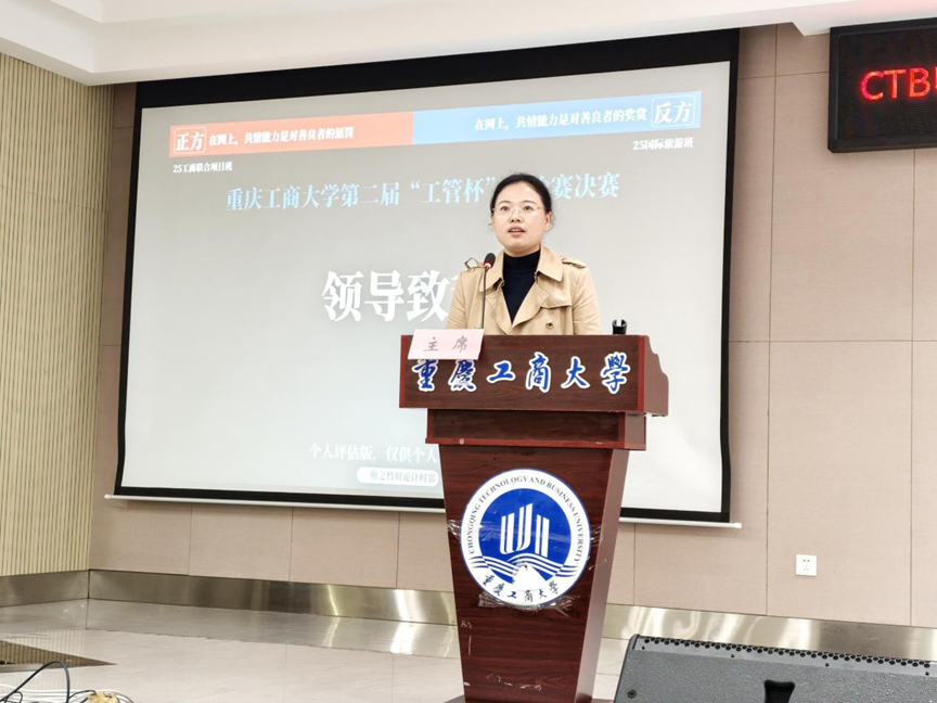 赛事尾声,评委团结合双方表现进行专业点评。评委们从论点架构的完整性、论据支撑的说服力、临场反应的敏捷度等方面,既肯定了两支队伍的亮点与优势,也针对辩论过程中的不足提出了具体优化建议。随后,学生会指导老师边子华作总结讲话,他高度认可全体辩手在赛事中的精彩表现,这场辩论不仅展现了工管学子的青春风采,更传递了理性思辨的精神。他希望同学们能将辩论中培养的逻辑思维和表达能力融入日常学习生活,在不断的思考与交锋中提升自我、成长成才。