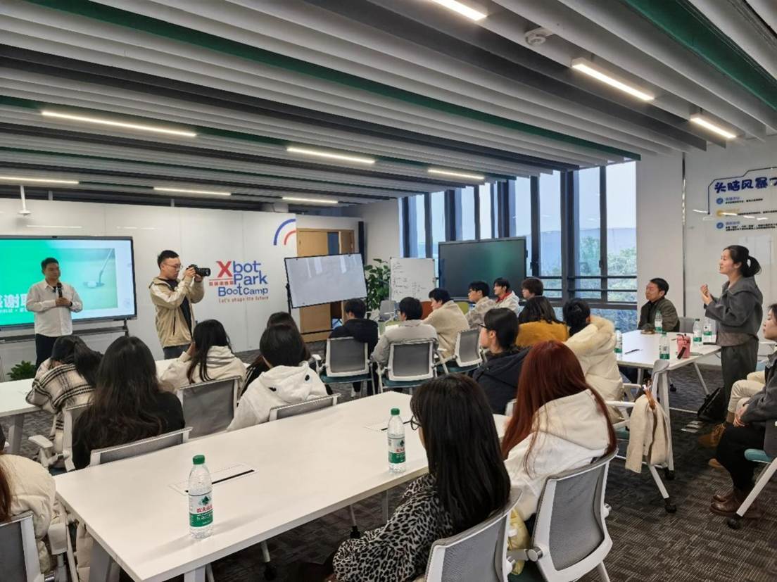 活动还特别安排了基地内科技创业者的分享与交流环节。凌犀创新科技公司刘又全与盖迈尔科技公司殷恺两位创业CEO,围绕他们从学生到创业者的历程做了精彩分享。老师和同学们也就创业思维转变、产品需求发现、团队管理等问题积极发问,对创业生态有了更具象的理解。