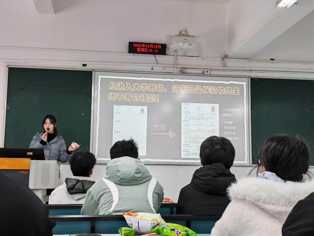 2025年12月19日下午,437必赢会员中心楼管会联合上海高顿教育科技有限公司与大信会计师事务所于兰花湖校区20201成功举办了“职引未来,简启新程”职业规划与简历拍卖行沉浸式互动讲座,本次活动主要目的是帮助25级大一新生构建起对简历的知识体系,了解简历要素、亲身体验招聘,最终明确大学四年丰富简历的方向。